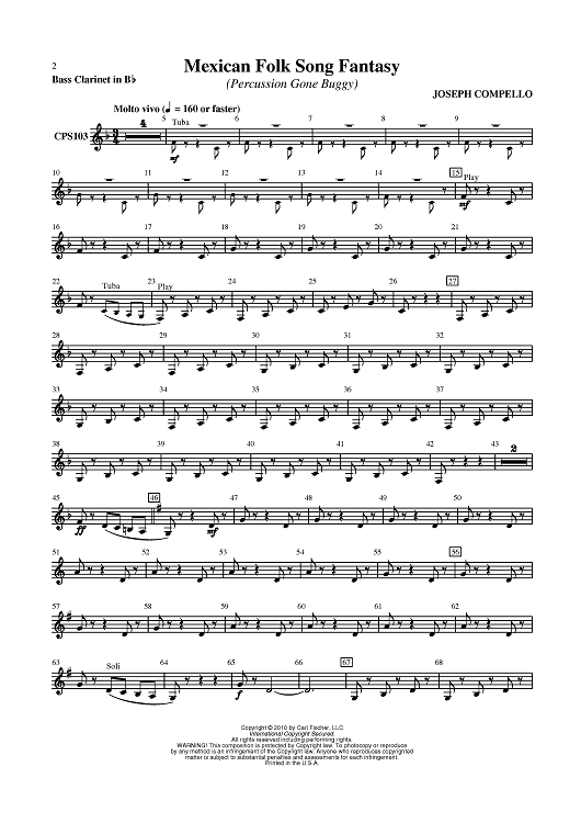 "Mexican Folk Song Fantasy (Percussion Gone Buggy) - Bass Clarinet in B-flat" Sheet Music by Joseph Compello