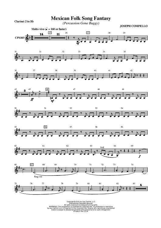 "Mexican Folk Song Fantasy (Percussion Gone Buggy) - Clarinet 2 in B-flat" Sheet Music by Joseph Compello