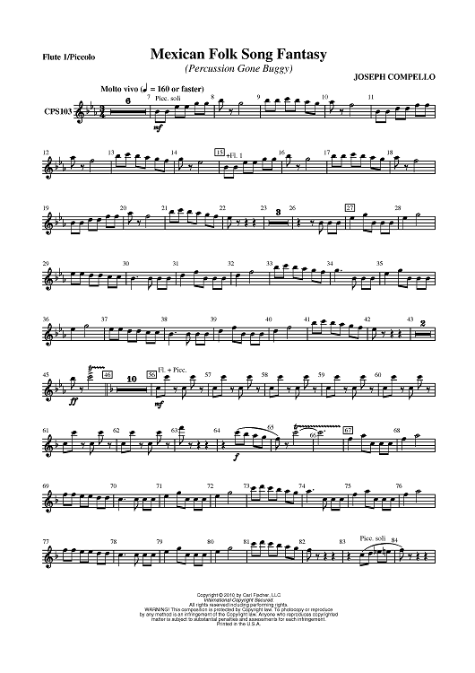 "Mexican Folk Song Fantasy (Percussion Gone Buggy) - Flute 1/Piccolo" Sheet Music by Joseph Compello