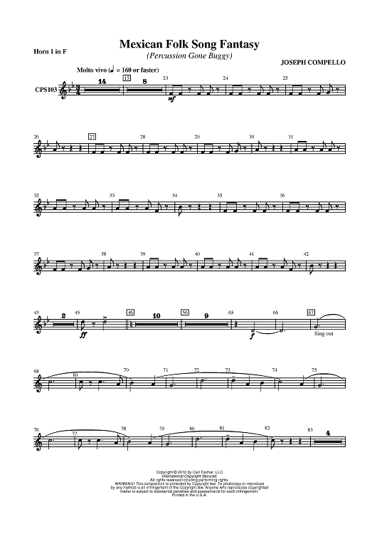 "Mexican Folk Song Fantasy (Percussion Gone Buggy) - Horn 1 in F" Sheet Music by Joseph Compello