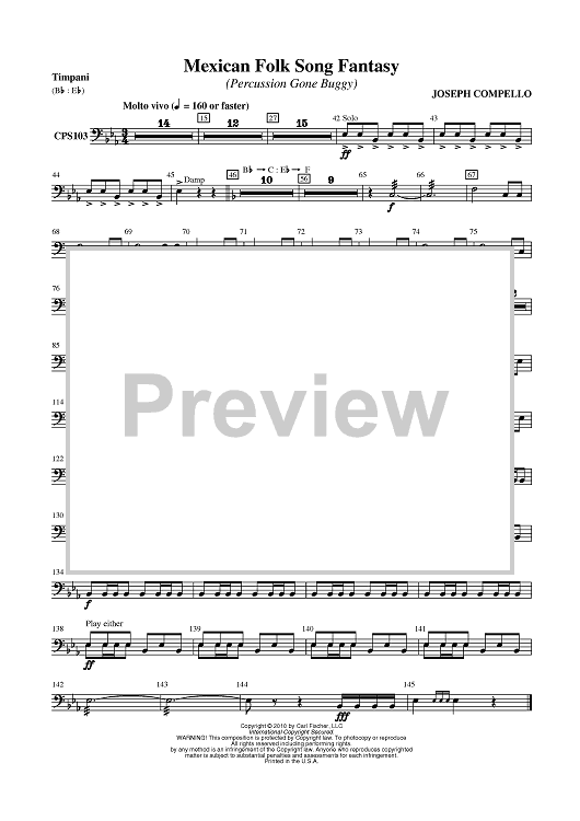 "Mexican Folk Song Fantasy (Percussion Gone Buggy) - Timpani" Sheet Music by Joseph Compello