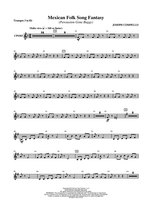 "Mexican Folk Song Fantasy (Percussion Gone Buggy) - Trumpet 3 in Bb" Sheet Music by Joseph Compello