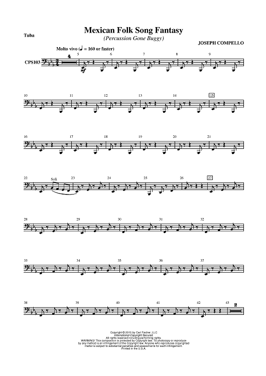 "Mexican Folk Song Fantasy (Percussion Gone Buggy) - Tuba" Sheet Music by Joseph Compello