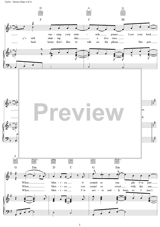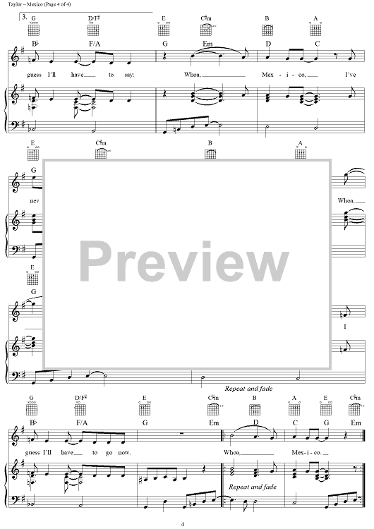 Digital Sheet Music for Mexico by James Taylor scored for Piano/Vocal/Chords; id:111369
