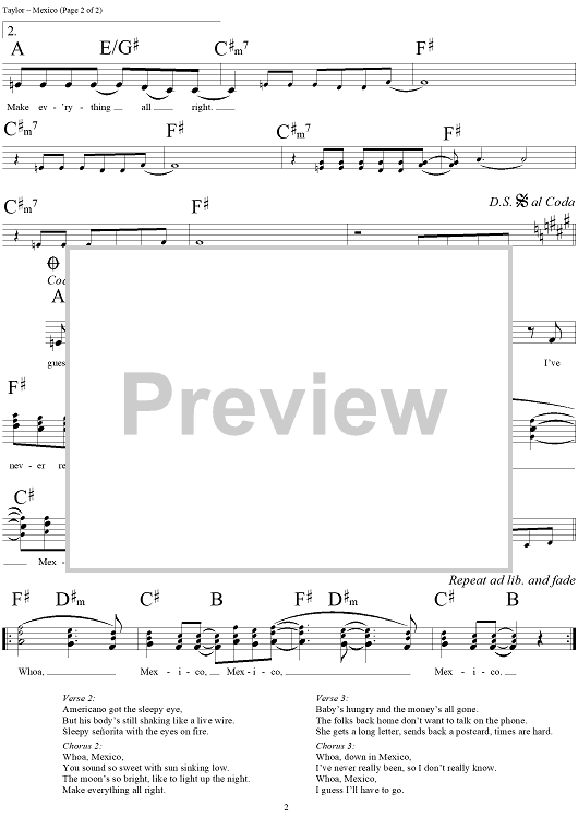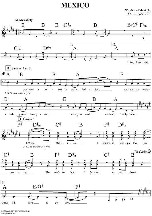 Digital Sheet Music for Mexico by James Taylor scored for Lead Sheet; id:294004