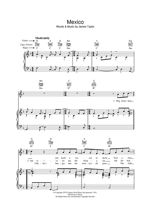 Digital Sheet Music for Mexico by James Taylor scored for Piano/Vocal/Chords; id:393349