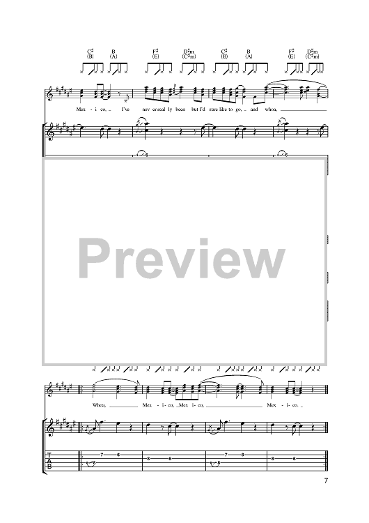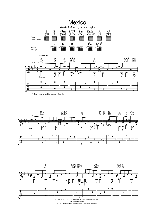 Digital Sheet Music for Mexico by James Taylor scored for Guitar Tab; id:393350