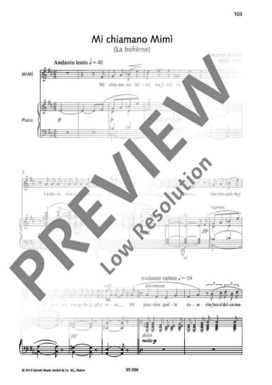 Digital Sheet Music for Mi chiamano Mimì in D major by Giacomo Puccini scored for Voice (soprano); id:480525