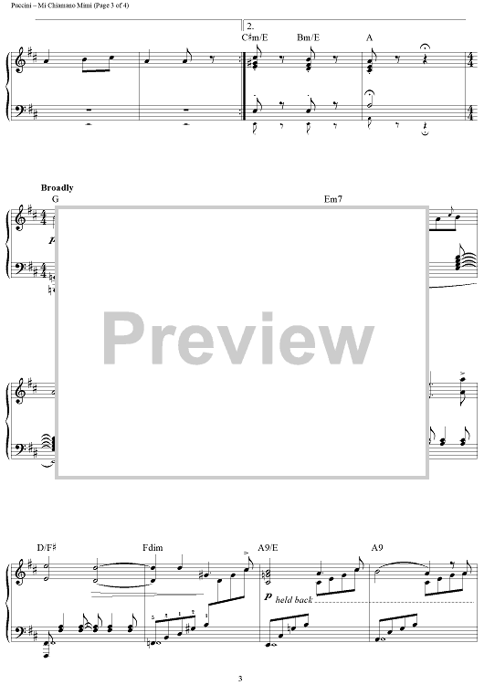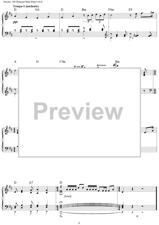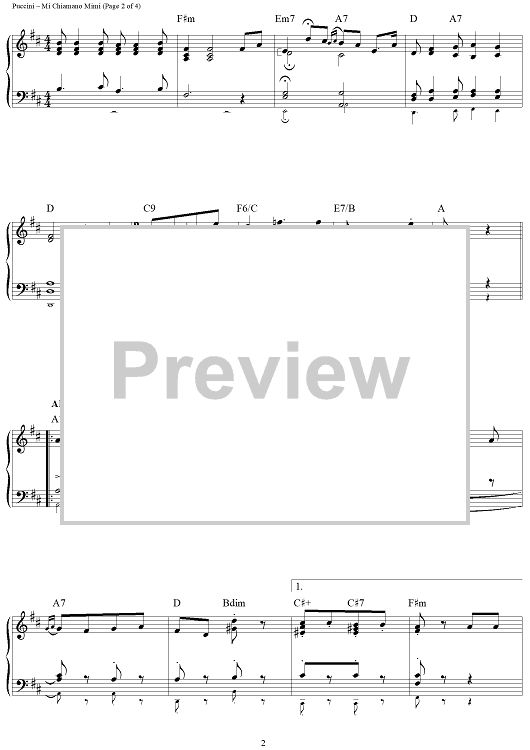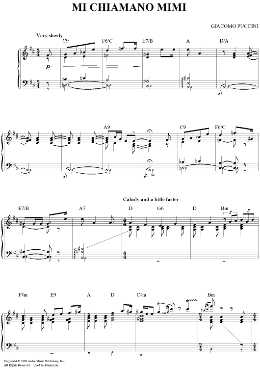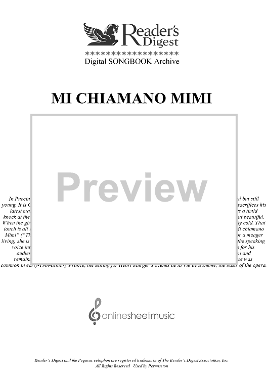 Digital Sheet Music for Mi Chiamano Mimi by Giacomo Puccini scored for Easy Piano/Chords; id:434715