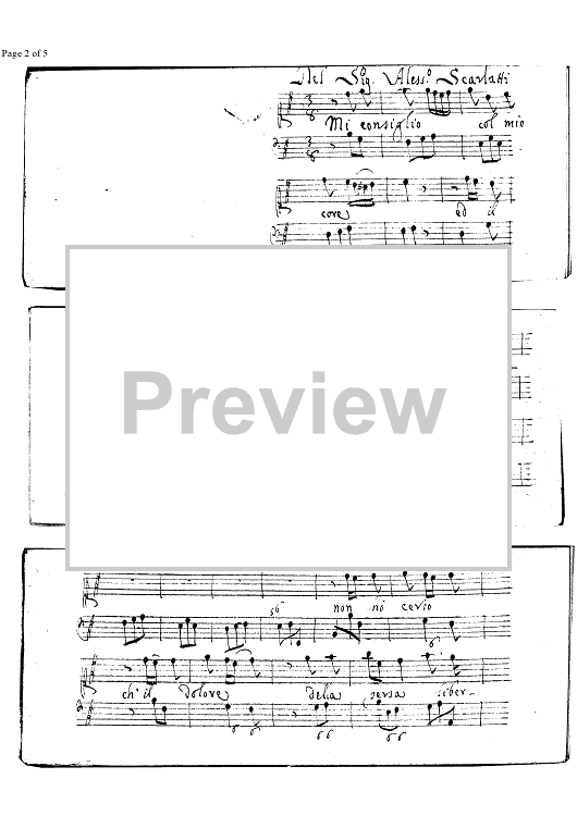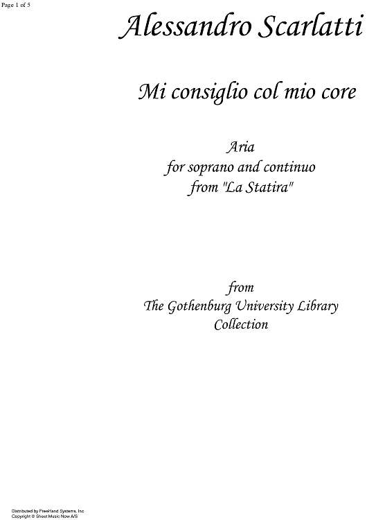 "Mi consiglio col mio core" Sheet Music by Alessandro Scarlatti