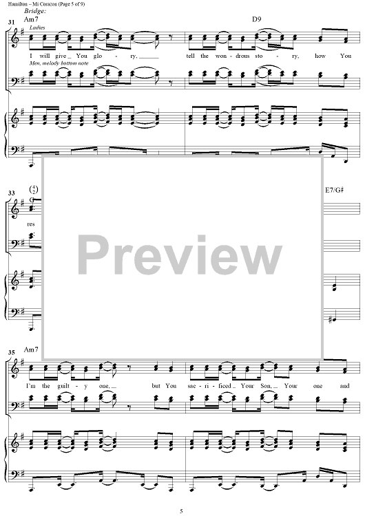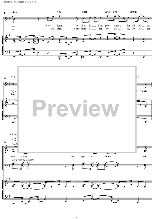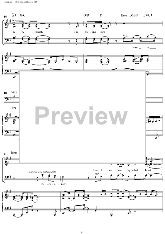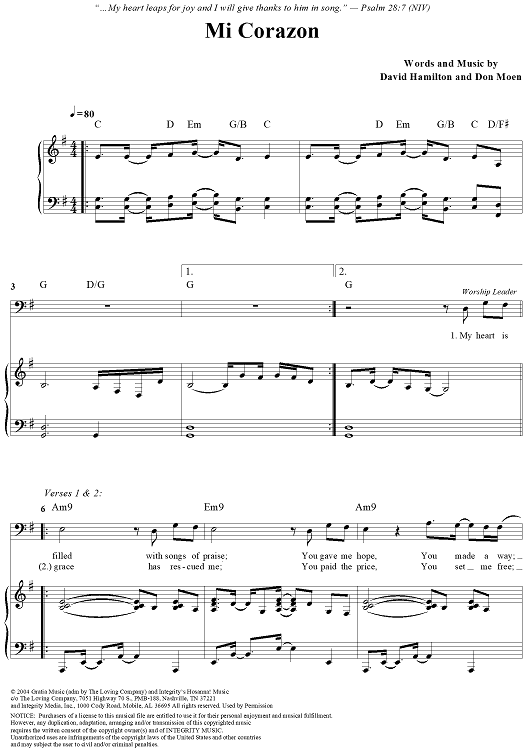 Digital Sheet Music for Mi Corazon by David Hamilton, Don Moen scored for Mixed Chorus/Piano; id:308947