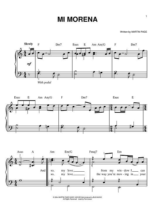 Digital Sheet Music for Mi Morena by Martin Page, Josh Groban scored for Easy Piano; id:397854