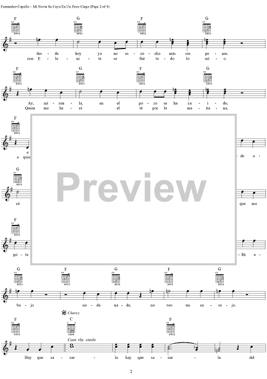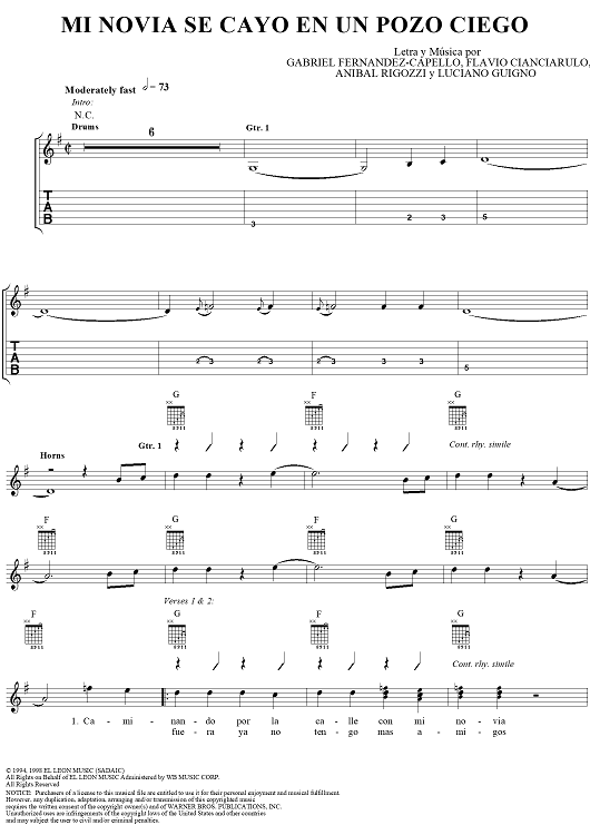 "Mi Novia Se Cayo en un Pozo Ciego" Sheet Music by Los Fabulosos Cadillacs