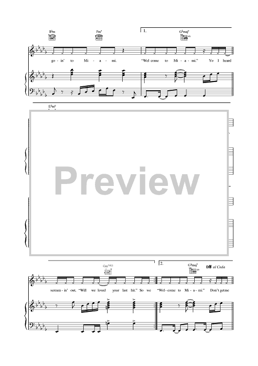 Digital Sheet Music for Miami by Will Smith, Samuel Barnes, William Shelby, Stephen Shockley, Leon Sylvers, Ryan Toby scored for Piano/Vocal/Chords; id:379932