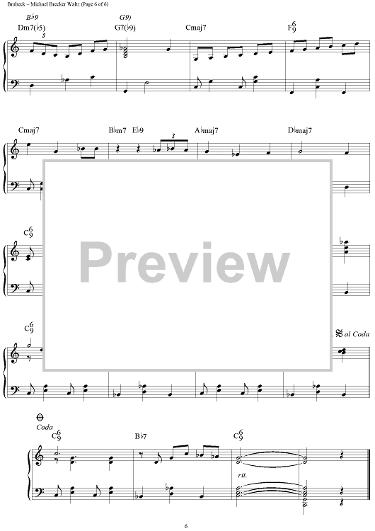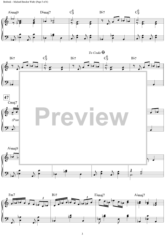 "Michael Brecker Waltz - Piano" Sheet Music by Dave Brubeck
