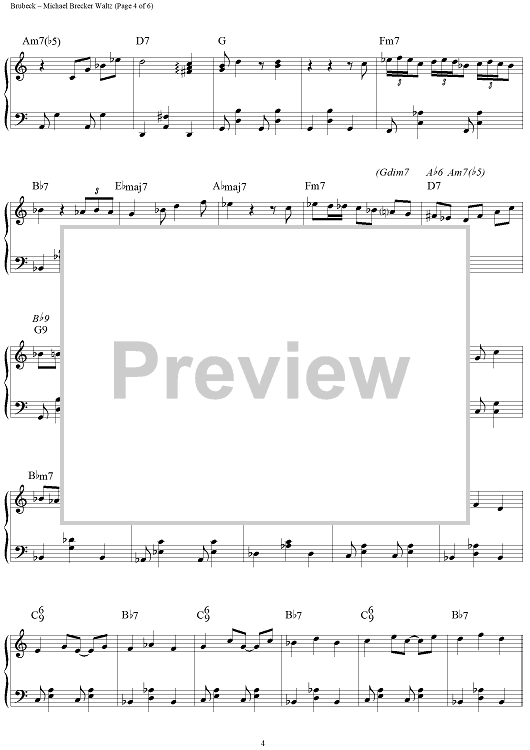 Digital Sheet Music for Michael Brecker Waltz - Piano by Dave Brubeck scored for B-flat Instrument/Piano; id:240527