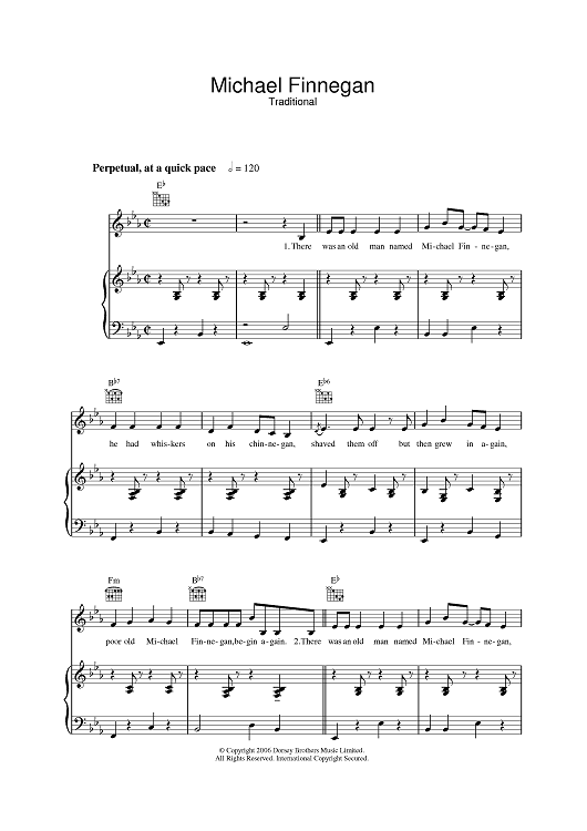 Digital Sheet Music for Michael Finnegan by Sam Hinton scored for Piano/Vocal/Chords; id:394469