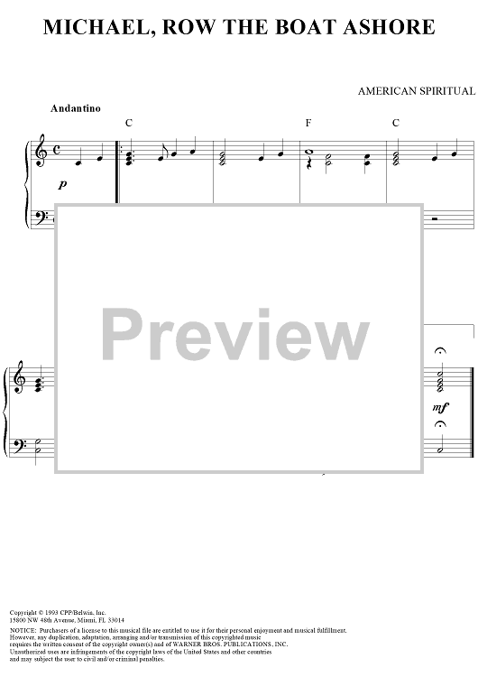 "Michael, Row the Boat Ashore" Sheet Music by Traditional