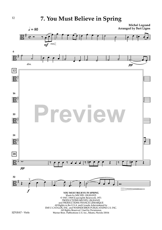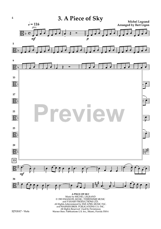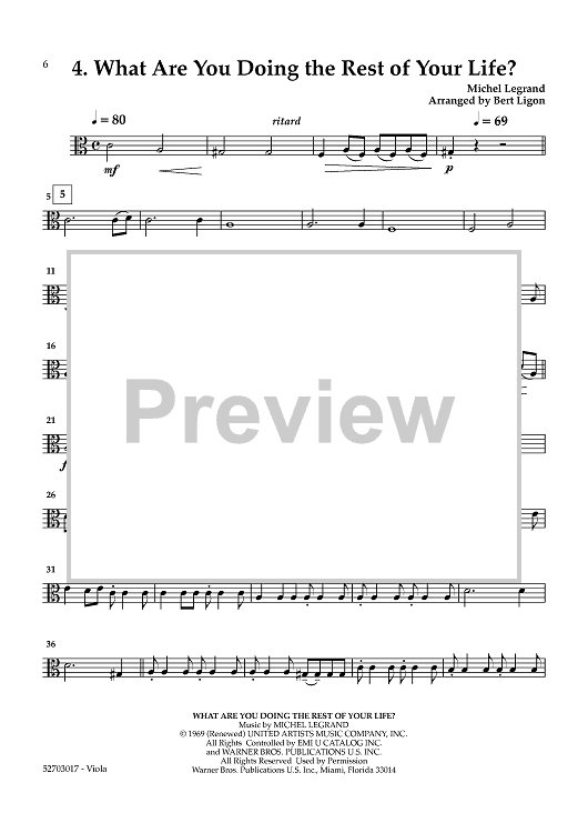 Digital Sheet Music for Michel Legrand Album - Viola by Michel LeGrand, Bert Ligon scored for String Quartet; id:458199