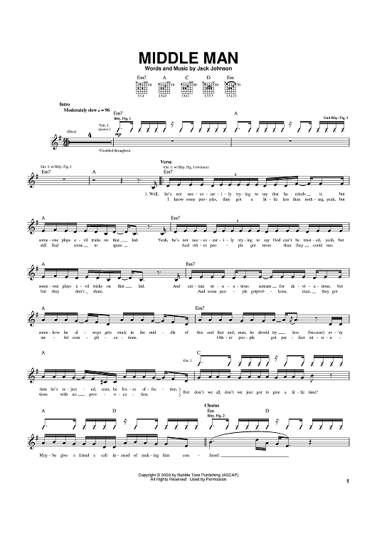 "Middle Man" Sheet Music by Jack Johnson