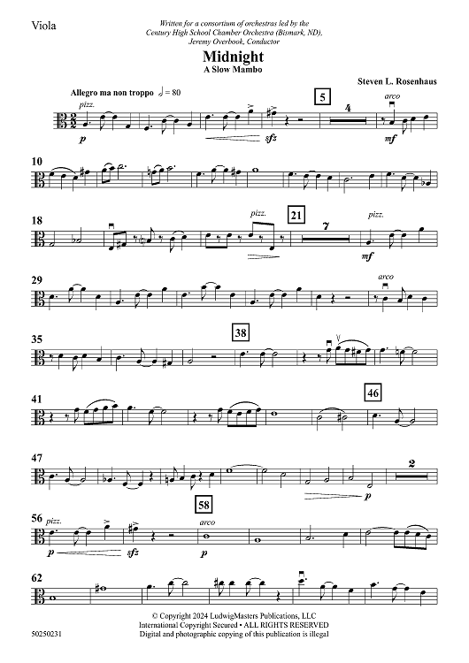 "Midnight (A Slow Mambo) - Viola" Sheet Music by Steven L. Rosenhaus