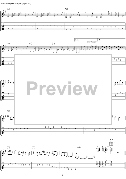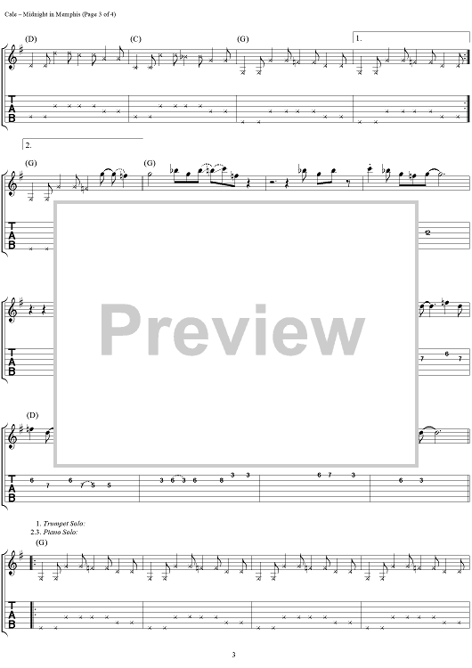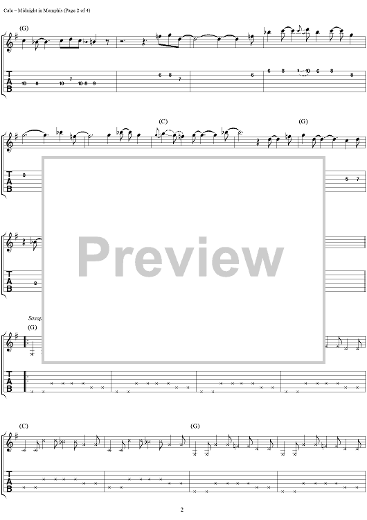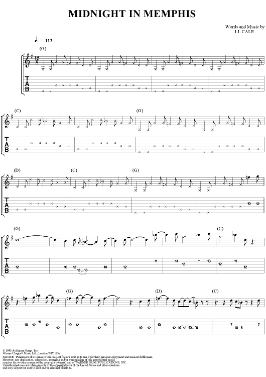 "Midnight in Memphis" Sheet Music by J. J. Cale