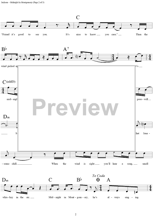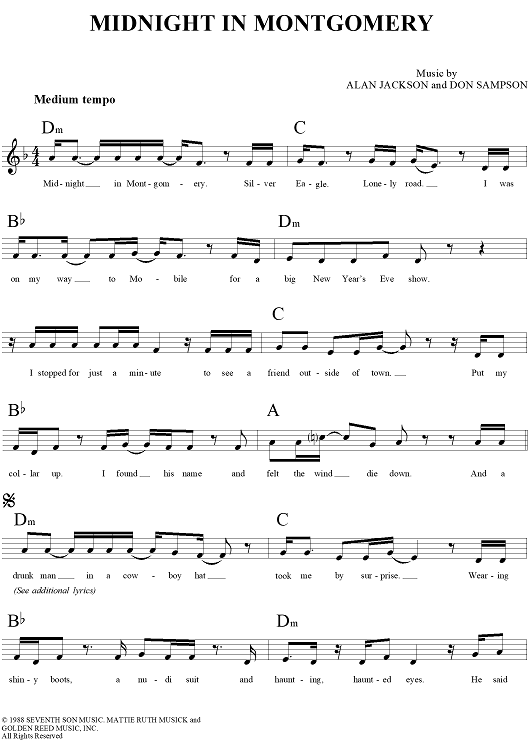 "Midnight in Montgomery" Sheet Music by Al Jackson Jr