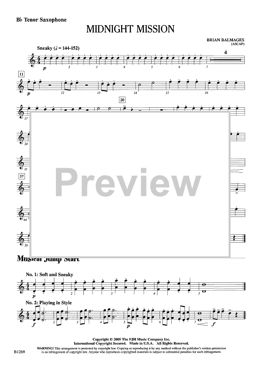 "Midnight Mission - Bb Tenor Sax" Sheet Music by Brian Balmages