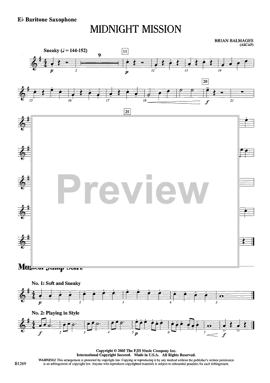 "Midnight Mission - Eb Baritone Sax" Sheet Music by Brian Balmages