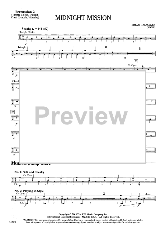 Digital Sheet Music for Midnight Mission - Percussion 2 by Brian Balmages scored for Concert Band; id:443242