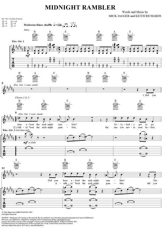 "Midnight Rambler" Sheet Music by The Rolling Stones