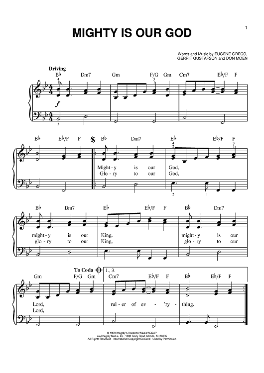 Digital Sheet Music for Mighty Is Our God by Don Moen, Gerrit Gustafson, Eugene Greco scored for Easy Piano; id:391303