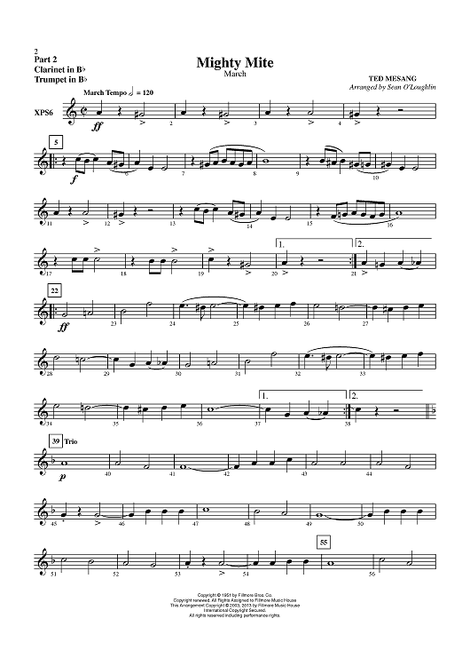 Digital Sheet Music for Mighty Mite (March) - Part 2 Clarinet in Bb / Trumpet in Bb by Sean O'Loughlin, Ted Mesang scored for Concert Band; id:436221