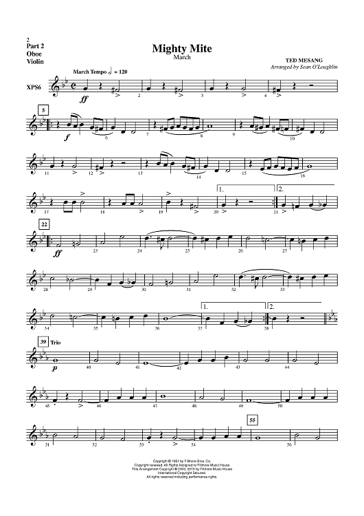 Digital Sheet Music for Mighty Mite (March) - Part 2 Oboe / Violin by Sean O'Loughlin, Ted Mesang scored for Concert Band; id:436223