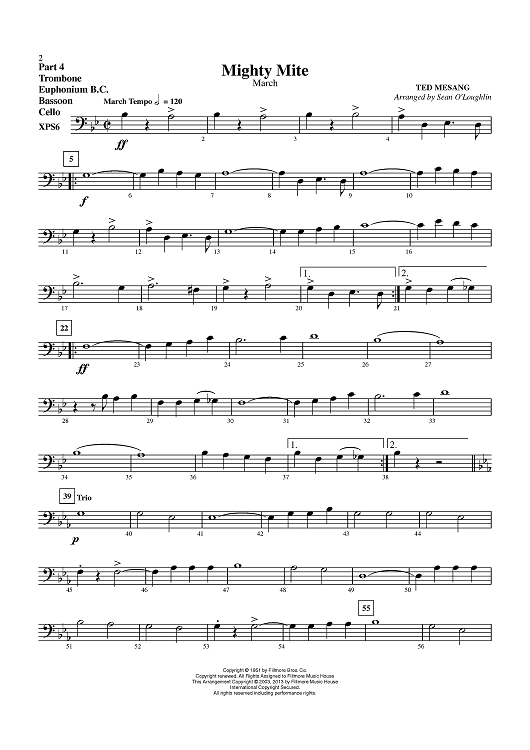 Digital Sheet Music for Mighty Mite (March) - Part 4 Trombone / Euphonium BC / Bassoon / Cello by Sean O'Loughlin, Ted Mesang scored for Concert Band; id:436232