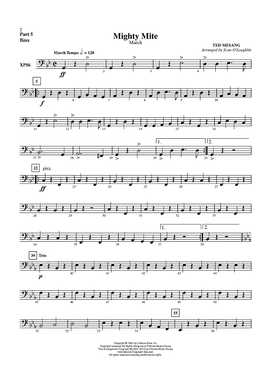 Digital Sheet Music for Mighty Mite (March) - Part 5 String Bass by Sean O'Loughlin, Ted Mesang scored for Concert Band; id:436237