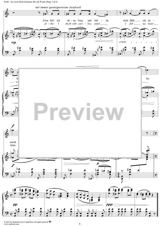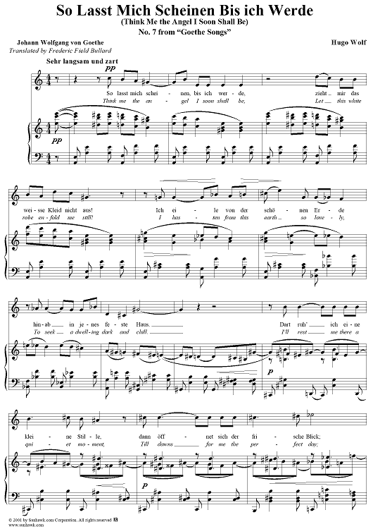 Digital Sheet Music for Mignon 3: So lasst mich scheinen, bis ich werde, No. 7 from "Goethe Lieder" by Johann Wolfgang von Goethe, Hugo Wolf scored for Voice/Piano; id:263571