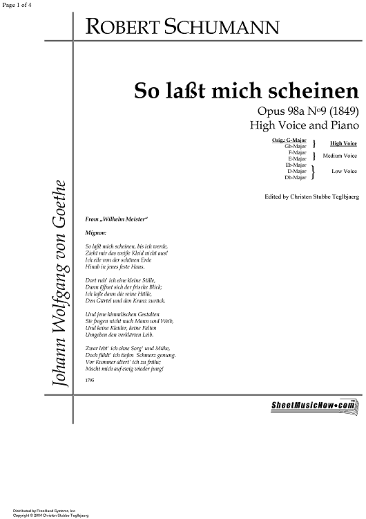 Digital Sheet Music for Mignon: So lasst mich scheinen Op.98a No. 9 by , Robert Schumann scored for Soprano or Tenor/Piano; id:348795