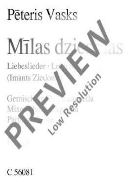 Digital Sheet Music for Milas dziesmas - Choral Score by Peteris Vasks scored for Mixed Choir A Cappella; id:485074