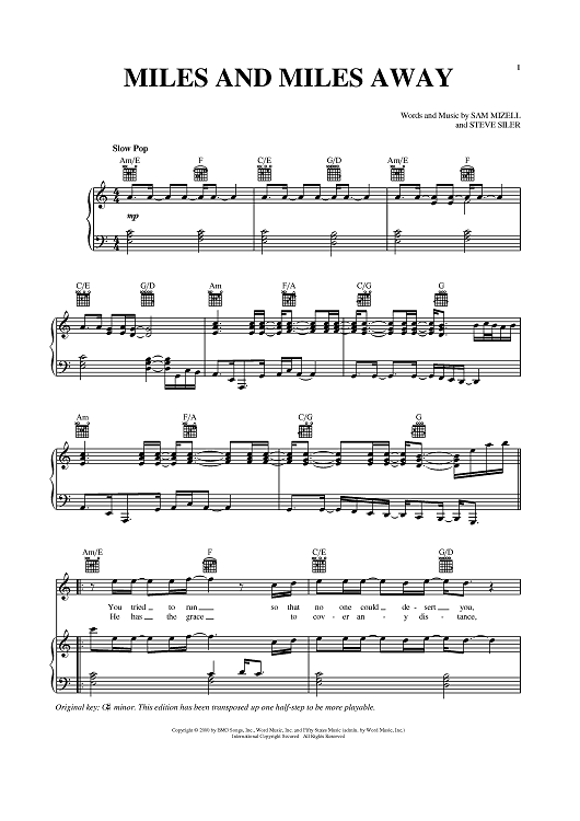 Digital Sheet Music for Miles And Miles Away by Sam Mizell, David Phelps, Steve Siler scored for Piano/Vocal/Chords; id:369075