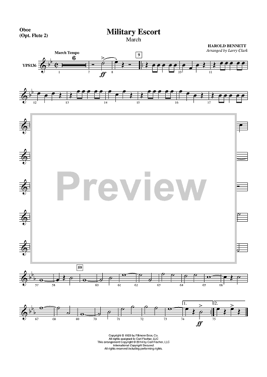 Digital Sheet Music for Military Escort March - Oboe (Opt. Flute 2) by Larry Clark, Harold Bennett scored for Concert Band; id:452673