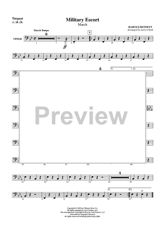 Digital Sheet Music for Military Escort March - Timpani by Larry Clark, Harold Bennett scored for Concert Band; id:452689