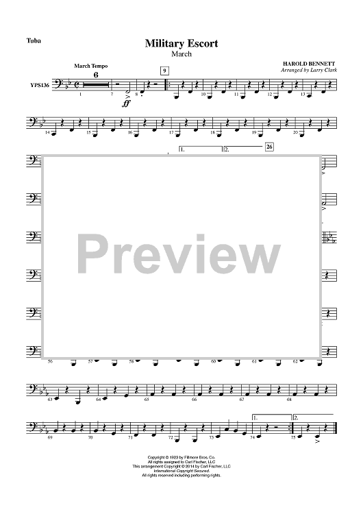 Digital Sheet Music for Military Escort March - Tuba by Larry Clark, Harold Bennett scored for Concert Band; id:452687