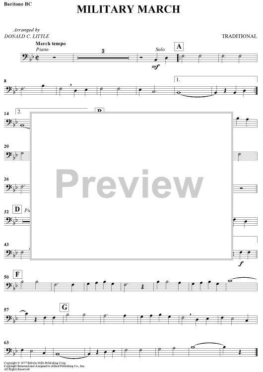 Digital Sheet Music for Military March by Traditional, Donald C. Little scored for Baritone BC/Piano; id:437931