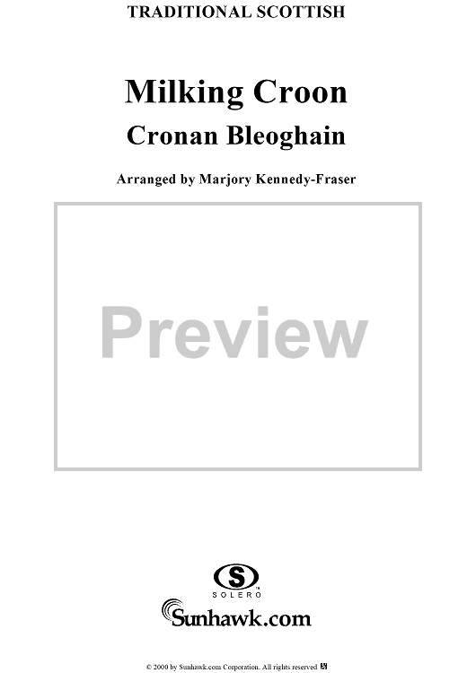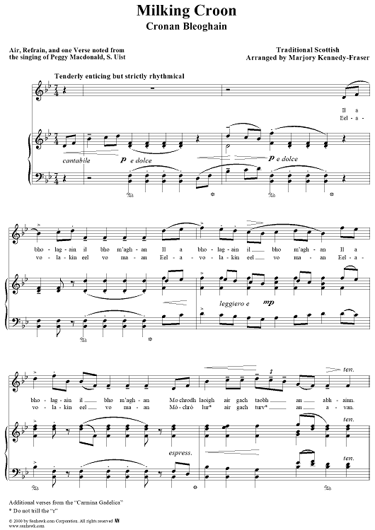 Digital Sheet Music for Milking Croon by Marjory Kennedy-Fraser, Traditional scored for Piano/Vocal; id:234733