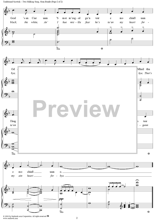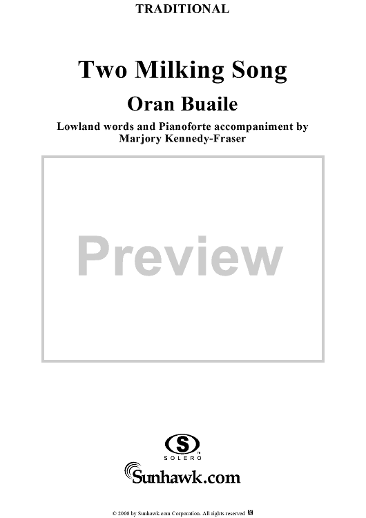 Digital Sheet Music for Milking Song by Marjory Kennedy-Fraser, Traditional scored for Piano/Vocal; id:234856
