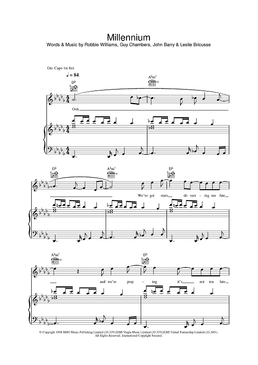 Digital Sheet Music for Millennium by John Barry, Robbie Williams, Guy Chambers scored for Piano/Vocal/Chords; id:380814