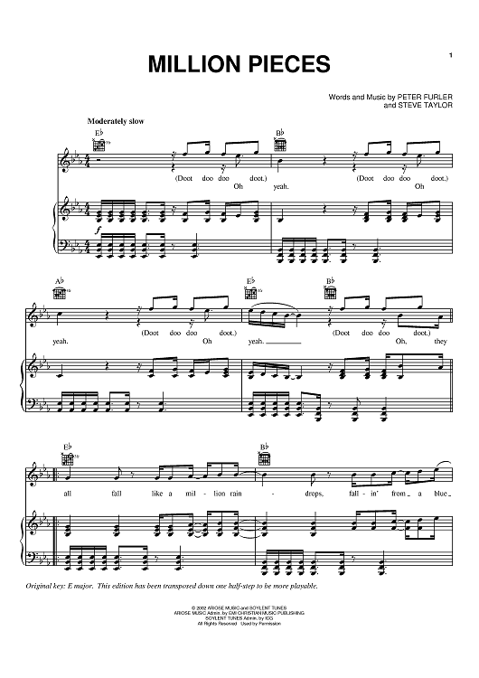 Digital Sheet Music for Million Pieces by Peter Furler, Steve Taylor, Newsboys scored for Piano/Vocal/Chords; id:371760