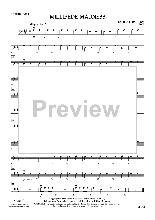 Digital Sheet Music for Millipede Madness - Double Bass by Lauren Bernofsky scored for Orchestra; id:448195