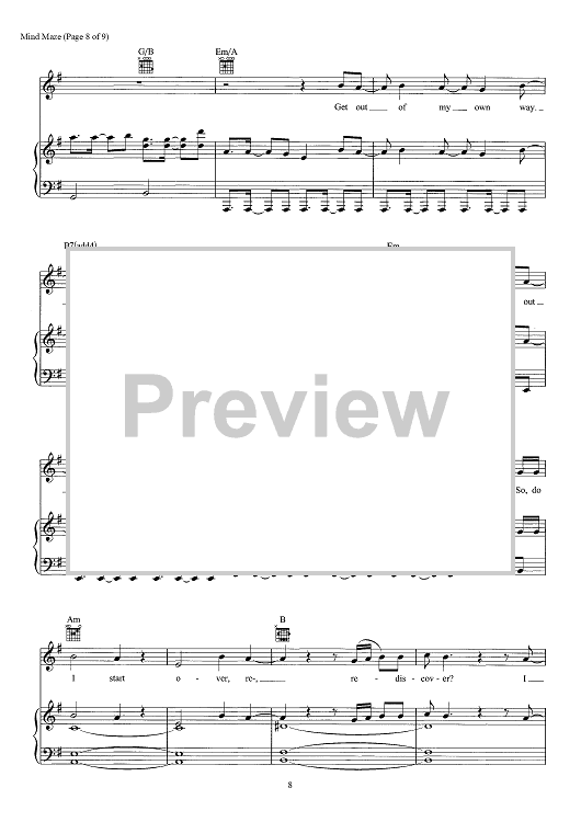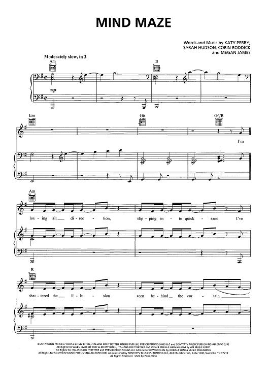 Digital Sheet Music for Mind Maze by Katy Perry, Sarah Hudson, Corin Roddick, Megan James scored for Piano/Vocal/Chords; id:466251